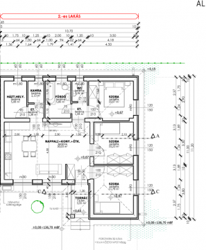 - Amerikai konyhás nappali, fürdő + WC, külön WC, kamra, háztartási helyiség, tornác