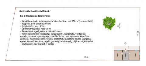 A telek 22 méter széles és 63 méter mély, így használati megosztással több részre lehet bontani.