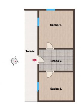 Jelenlegi elrendezése szerint a tornác felőli megközelítéssel a konyhából két nagy szoba nyílik. Az egyik 21 m2 a másik 17 m2 nagyságú. A fürdőszoba még nem került még kialakításra, de a konyha részből könnyedén leválasztható. A belmagasság 290 centiméter így az épület megtartása esetén további bővítéssel kiegészítve nem csak lakó, hanem étterem, vagy egyéb kereskedelmi funkció is kialakítható benne.