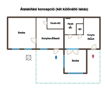 A lakás az elrendezésének köszönhetően akár két, külön bejáratú lakrészre is bontható, illetve a padlástér is beépíthető, ezt már a házban más lakó is megcsinálta, természetesen a társasház hozzájárulásával.